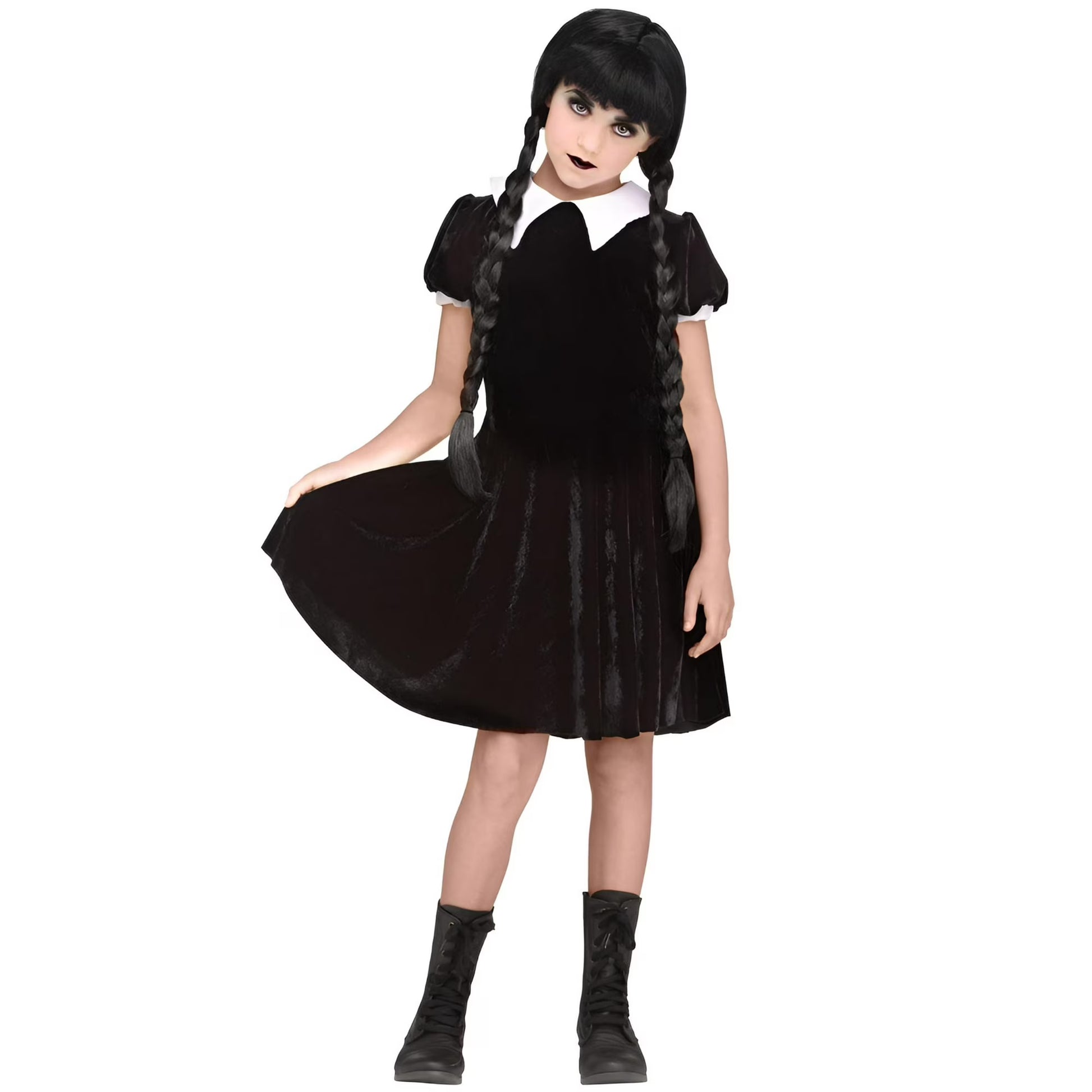 Fun World Gothic Wednesday Addams Girl's Halloween Fancy-Dress Costume for Child, M (8-10)