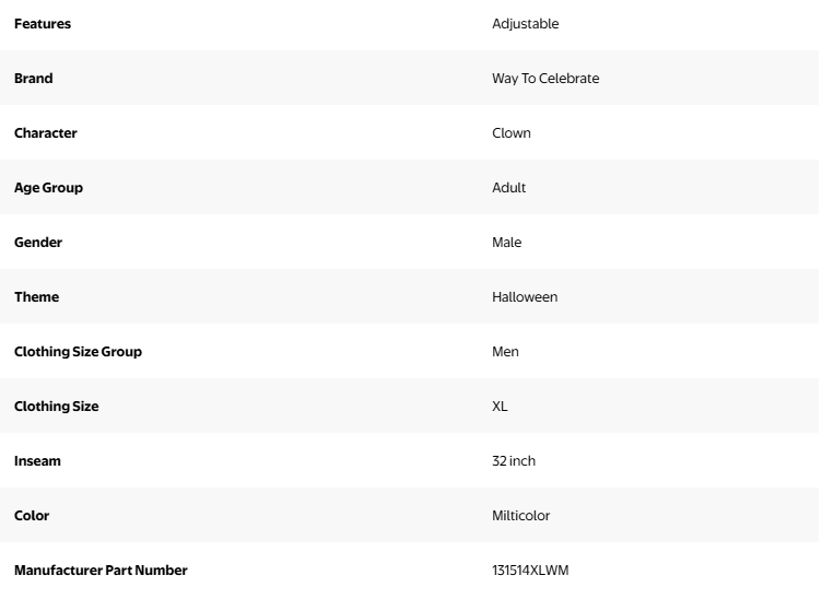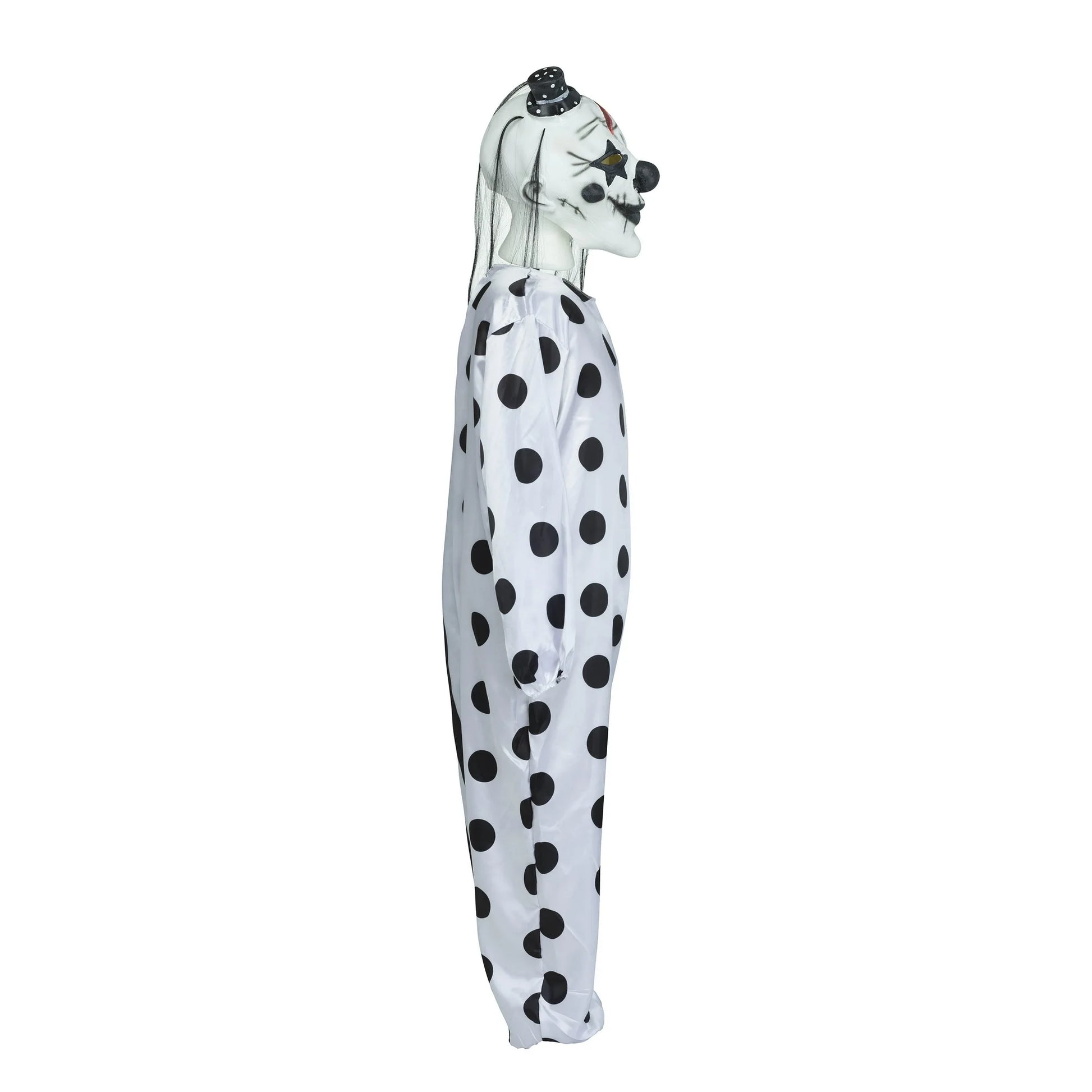 - Features: Fake hair on mask; 3D ruffle collar; allover polka dots and stripes